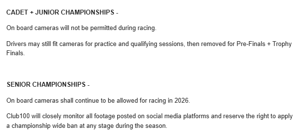 Quite a few cameras fell off karts at Buckmore this year, so perhaps its to reduce marshall time or increase safety to stop cameras hitting other karts or drivers.