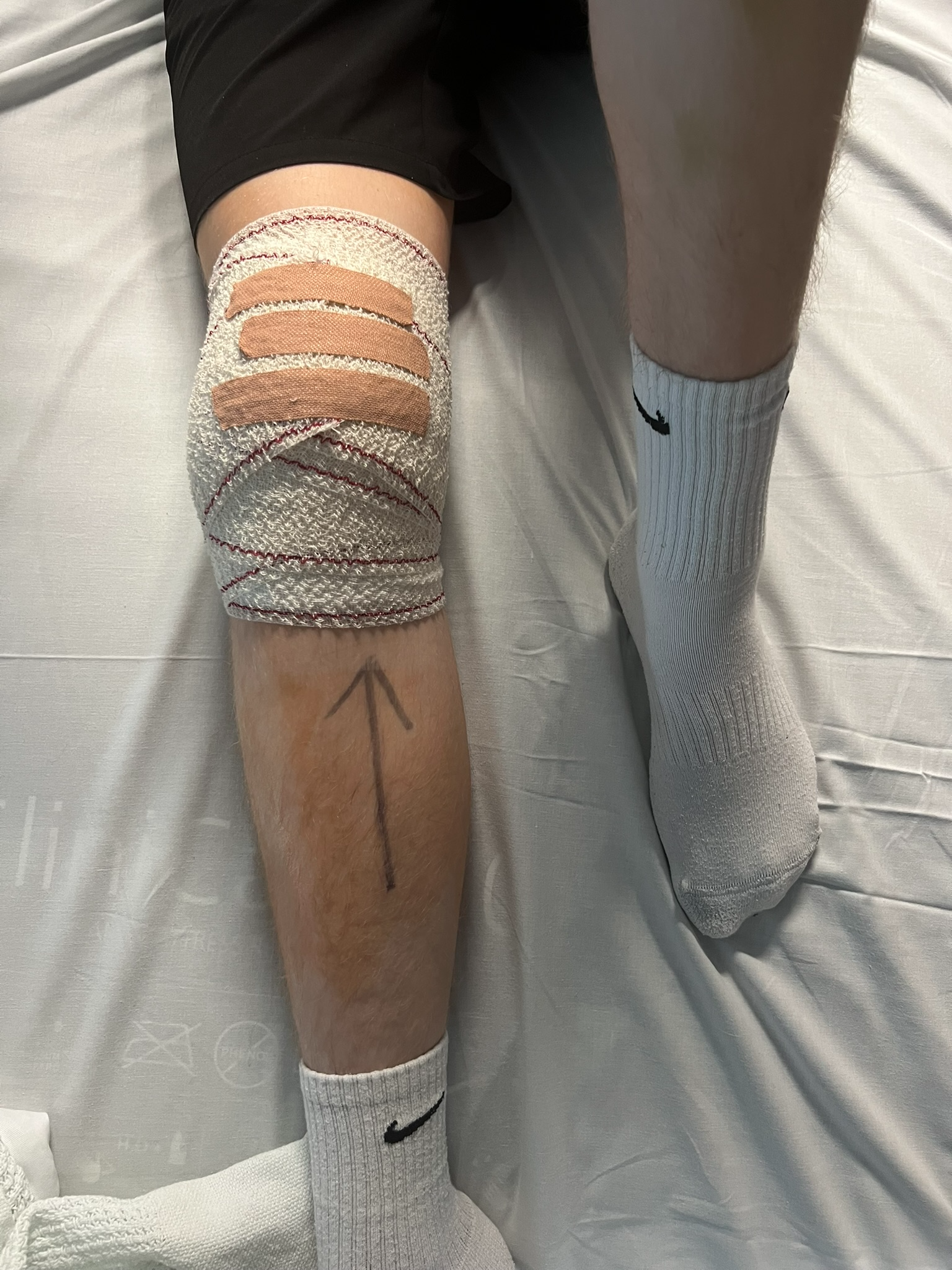 My right leg is marked with an arrow so they don't accidentally do the wrong leg and bandaged up with numbing cream while we wait for the operation slot.